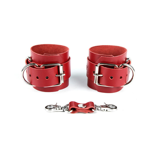 - Шкіряні наручники та поножи з м'якою замшевою підкладкою, яка захищає шкіру від травмування під час БДСМ сесій та надає додаткової естетичної привабливості бондажним аксесуарам.